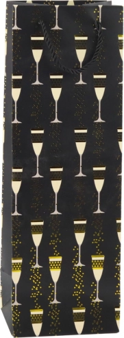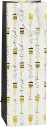 Ova poklon-vrećica za bocu spaja reprezentativan izgled i funkcionalnost. Efektan tisak čaša i mjehurića sa zlatnim akcentom daje svakom poklonu svečani ton – prikladno za vjenčanja, rođendane, obljetnice, doček Nove godine i poslovne događaje. Univerzalna dimenzija sigurno prima većinu standardnih boca.