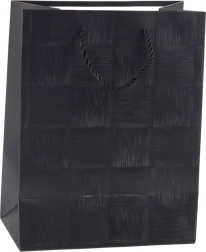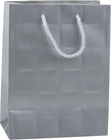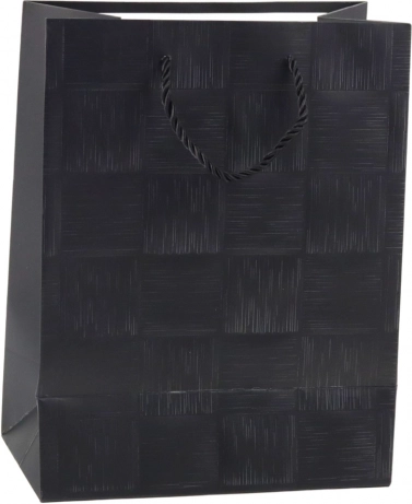 Elegantna poklon-vrećica s teksturiranim uzorkom kvadrata i čvrstim ručkama od špage idealna je za svaku prigodu. Zahvaljujući povećanoj gramaturi papira, izdržljiva je, stilizirana i lako prenosi srednje velike poklone – knjige, kozmetiku, odjeću ili igračke.