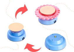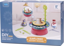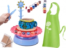Set uključuje šareni i atraktivan lončarski krug, namijenjen za modeliranje gline i ukrašavanje.