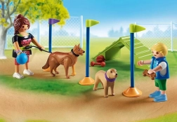 Otkrijte zabavno PLAYMOBIL myLife pseće igralište s bogatom opremom za trening i igru. Čekaju vas slalom prepreke, skakački obruč, njihaljka/balans greda i drugi elementi za kreativnu igru. Set je idealan za djecu od 4 do 10 godina, potiče maštu, finu motoriku i uloge u igri. U kompletu su figurice djece, psi i više od 60 dijelova za beskrajne priče.