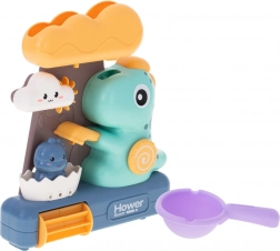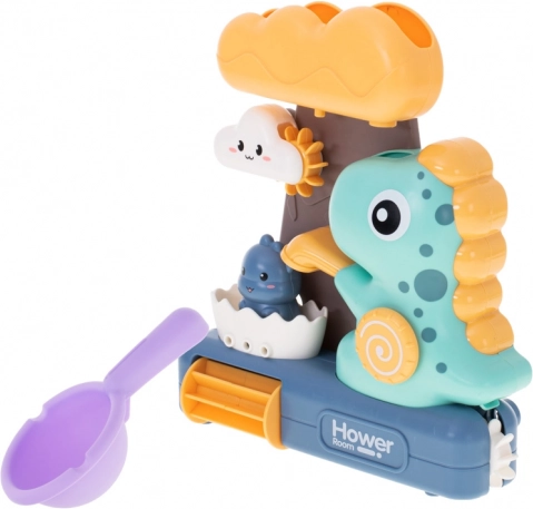 Dječja igračka za kupanje s dinosaurusima i vodnim kotačićem je odličan način za obogaćivanje kupanja male djece. Igra se sastoji od nalijevanja vode u gornji spremnik u obliku velikog oblaka, odakle voda slobodno prolazi kroz sve dijelove igračke, osiguravajući vizualnu zabavu za djecu.