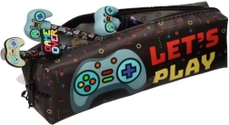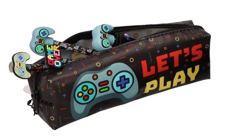 Praktična jednokomorna pernica s gaming dizajnom razveselit će svakog ljubitelja videoigara. Kompaktne dimenzije 19 × 6 × 5 cm lako stanu u ruksak, dok čvrst zatvarač i kvalitetna izrada osiguravaju dug vijek trajanja. Moderan print s kontrolerom i sloganom LET’S PLAY daje vašoj školskoj opremi originalan izgled.