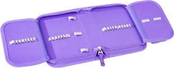Jednokatna pernica izrađena je od recikliranog materijala i sadrži prostor za sve školske potrepštine, čvrste gumice za bojice i flomastere te džepić za sitnice. Vrećica za obuću se lako pričvršćuje na torbu, pregača je idealna za kreativne aktivnosti, a praktični novčanik s etiketom za ime poslužit će za pohranu novca ili sitnica.