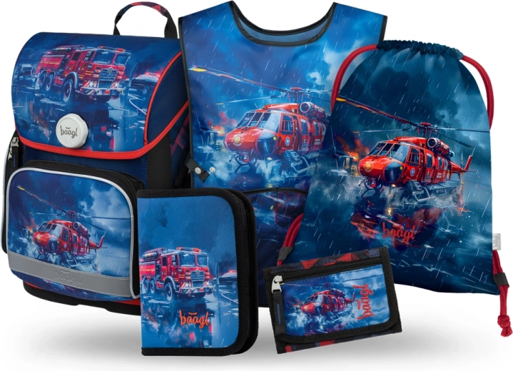 Set Baagl 5 Ergo spasitelji donosi kompletan pribor za školarce s naglaskom na zdravlje i udobnost. Ergonomsku školsku torbu karakteriziraju anatomski oblikovana leđa i čvrsto dno, prikladna je za djecu od prvog razreda osnovne škole. Zahvaljujući podesivom leđnom sustavu i potpuno prilagodljivim naramenicama, savršeno se prilagođava tjelesnoj građi djeteta.
