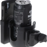 Ovaj držač je prikladan za različite vrste boca, bidona, termosica i telefona. Četiri fleksibilna 'uši' osiguravaju sigurno fiksiranje napitaka bez straha od izlijevanja. Otvorene strane omogućuju jednostavan pristup sadržaju. Pretinac za telefon omogućuje vam da vaš uređaj bude uvijek pred očima, tako da nećete propustiti nijednu važnu poruku.