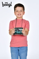 Stilizan dječji novčanik Baagl s motivom dinosaura i mogućnošću nošenja oko vrata nudi praktičnu organizaciju i sigurno nošenje. Zahvaljujući podesivoj vrpci sa sigurnosnom kopčom, zatvaranju na čičak i posebnom džepiću za sitniš idealan je za svakodnevnu upotrebu u školi i na aktivnostima. Izrađen od izdržljivog recikliranog materijala.