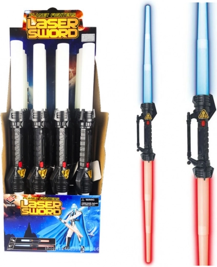 Mač je opremljen svjetlosnim i zvučnim efektima koji se aktiviraju pri uključivanju. Ovi efekti, koje napajaju priložene baterije, omogućuju stvaranje još napetijih i uvjerljivijih scenarija igre. Drška izrađena od izdržljive plastike djeluje poput tehnologije budućnosti, dok se teleskopska oštrica glatko rasklapa i svijetli crvenom i plavom bojom. Odličan je izbor i za svakodnevnu igru i za galaktičke kostimirane avanture.
