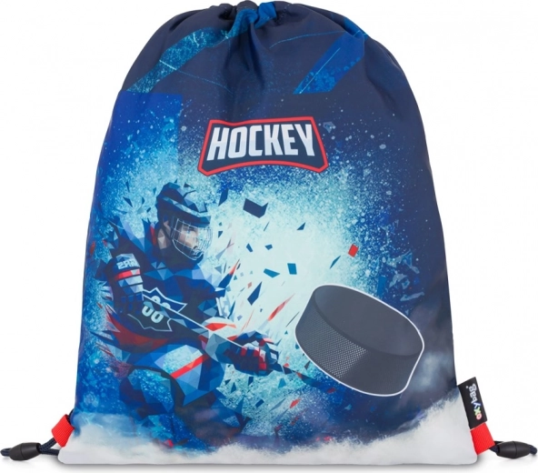 Praktična vrećica za vježbu ili papuče za školu s motivom hokeja. Lagana i izdržljiva, lako se zatvara povlačenjem uzica.