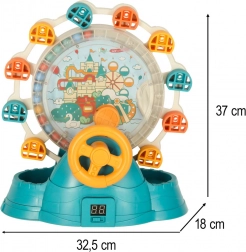 Ovaj fantastični vrtuljak opremljen je volanom i toboganom za loptice, što je izvrsna kombinacija za zabavnu i aktivnu igru. Djeca mogu razvijati svoje motoričke vještine pri ubacivanju i hvatanju loptica, dok svjetlosni i zvučni efekti pružaju dodatnu dimenziju zabave.