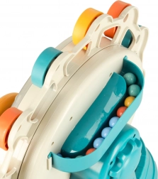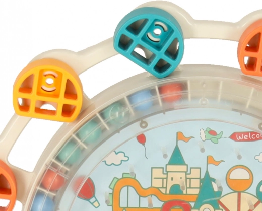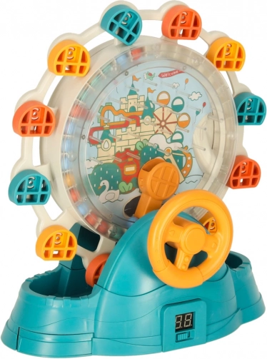 Vrtuljak kombinira volan s interaktivnim toboganom za loptice, pružajući ne samo zabavu već i razvoj dječje kreativnosti.