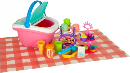 Sadržaj pakiranja uključuje igračke kao što su sladoledi, donuti, deserti, mlijeko, sok, čašice, slatkiši i čak žličica za sladoled. Tu su i tacna, pladanj, stalak za sladoled te praktična plastična cerada.