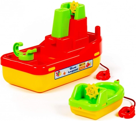 Otkrijte tegljač Laguna s malim brodićem – šareni vodeni set koji će razveseliti male kapetane. Robusna izrada od kvalitetne plastike jamči dug vijek trajanja, dok je siguran dizajn idealan za igru u vodi. Zahvaljujući kompaktnim dimenzijama, igračka se lako prenosi i pohranjuje.