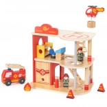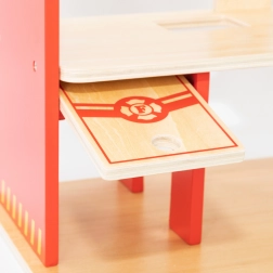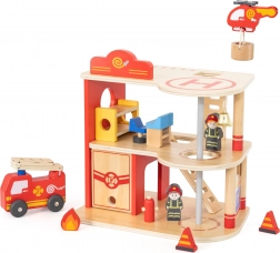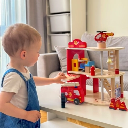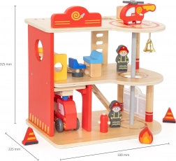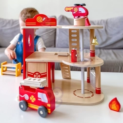 Ova robusna drvena vatrogasna postaja s tri razine donosi djeci od 3 godine na više sate akcijske zabave. U prizemlju je garaža za vatrogasno vozilo i mjesto za opremu, na drugom katu ugodna zona za odmor sa zvoncem i šipkom za brzi spust, a treći kat krasi heliodrom za vatrogasni helikopter.