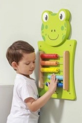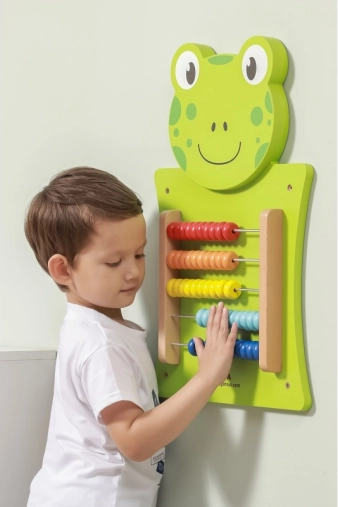 Ovo žablje računalo spaja razigranu estetiku s praktičnim učenjem. Pet vodoravnih šipki s obojenim perlicama potiče djecu na pomicanje i brojanje, čime vježbaju finu motoriku, koordinaciju oko–ruka i logičko razmišljanje. Zidna izvedba štedi prostor i uvijek je pri ruci.