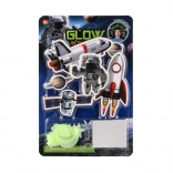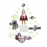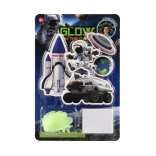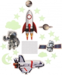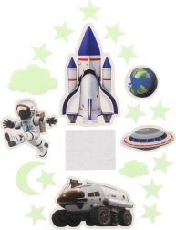 Pretvorite dječju sobu u malu galaksiju! Set sadrži svjetleće zvijezde, planete i druge svemirske motive koji se nakon izlaganja svjetlu u mraku zasjaje i stvaraju čarobnu atmosferu. Idealno za male istraživače, pomaže umiriti se prije spavanja i učiniti prostor ugodnijim.