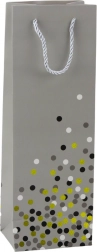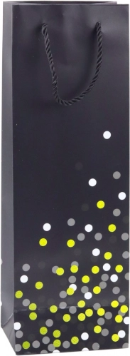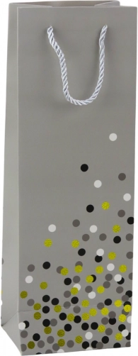 Vrećica je izrađena od visokokvalitetnog papira odgovarajuće gramature, što osigurava njezinu otpornost na gužvanje i dobru nosivost. Uške od špage udobne su za nošenje i omogućuju sigurno držanje sadržaja. Moderan dizajn s diskretnim, sjajnim akcentima daje vrećici izniman karakter.
