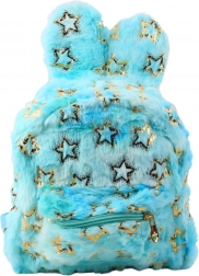 Ruksak je izrađen od mekog pliša, u koji su uklopljene svjetlucave zlatne i crne zvjezdice. Uške koje strše na vrhu daju bajkovit izgled, a cjelokupni dizajn održan je u pastelnim bojama koje su djeci ugodne. Ruksak sadrži jedan glavni pretinac s patentnim zatvaračem i manji prednji džep – idealan za sitnice.