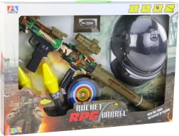 Vojni set s bazukom RPG nudi inspirirajuće iskustvo za male obožavatelje vojnih igara. Velika i učinkovita raketna strela s optičkim nišanom i tri rakete osigurava bezbroj sati sjajne zabave. Djeca mogu vježbati svoju preciznost pucanjem na priloženu metu, što pomaže razvijati njihovu koordinaciju i motoričke vještine.