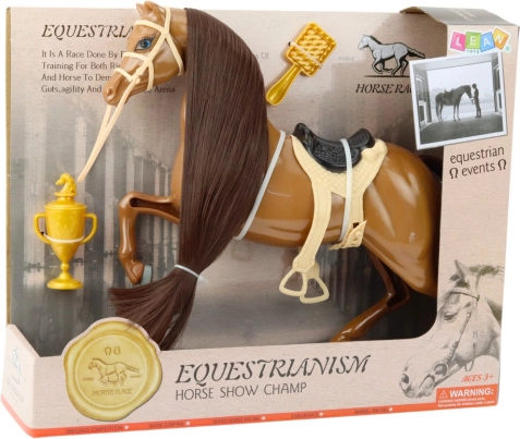 Realistično izrađen konj s lijepom, mekom grivom koju je moguće češljati i aranžirati po vlastitim željama nudi kreativnu i privlačnu igru koja razvija maštu i finu motoriku. Dodaci poput sedla, uzde i zlatnog pehara potiču djecu na stvaranje vlastitih scenarija i daju igri veću autentičnost.