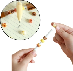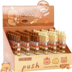 Kemijska olovka s figuricama kapibare nije samo praktičan alat za svakodnevno pisanje, već i presladak dodatak koji privlači pažnju i popravlja raspoloženje. Figurica kapibare smještena je u prozirnoj komori olovke te ju je moguće pomicati, okretati ili mijenjati njihov redoslijed po želji. Mehanizam za izvlačenje uloška na klik čini olovku lako upravljivom čak i za najmlađe korisnike.