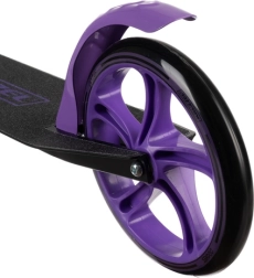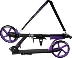 Ovaj crno‑ljubičasti romobil izvrstan je izbor za djecu od 8 godina naviše i starije vozače koji žele udobna i sigurna gradska kretanja. Veliki 200 mm kotači ublažavaju neravnine i pružaju stabilnost, dok protuklizna platforma i pouzdana nožna kočnica daju kontrolu u svakoj situaciji. Sklopivi mehanizam i podesivi remen olakšavaju prijevoz i pohranu.