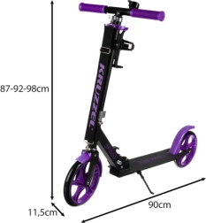 Lagan gradski romobil KRUZZEL s velikim kotačima 200 mm za glatku vožnju po pločnicima i neravninama. Zahvaljujući sklopivoj konstrukciji, podesivim upravljačima (87–92–98 cm) i nožnoj kočnici nudi sigurnost, udobnost i jednostavno nošenje uz podesivi remen. Protuklizna platforma, dodatci u pakiranju i ležajevi ABEC-7 osiguravaju sigurnost te tih, gladak rad.