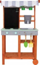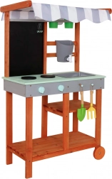 Ova izdržljiva i stabilna kuhinja posebno je dizajnirana za vanjsku uporabu, kako bi izdržala i grubu igru i nepovoljne vremenske uvjete. Kuhinja nema oštrih rubova i njezina ergonomska konstrukcija je sigurna za svakog malog kuhara.