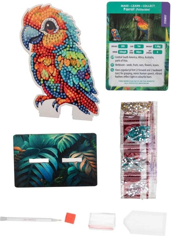 Uživajte u satima opuštajuće zabave uz dijamantno slikanje Jungle: Papiga, gdje lijepljenje sitnih kamenčića pruža zabavu za sve dobne skupine.