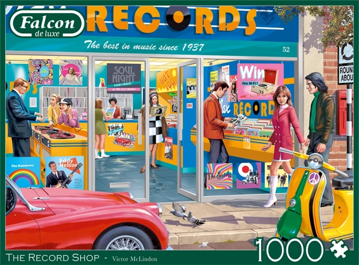 Uživajte u sastavljanju s puzzle FALCON koji sadrži 1000 dijelova i stvara prekrasnu sliku glazbene trgovine.