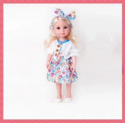 Predstavljamo prekrasnu lutku koja odmah osvaja svojom plavokosom kosom. Ova lutka nosi haljinu živih boja s cvjetnim motivom, koja priziva svježinu proljeća i ljeta. Savršena je za dječju igru i razvoj mašte.