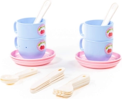 U setu se nalaze 4 šalice s tanjurićima i pribor za jelo. Sve se može prati i lako se čisti.