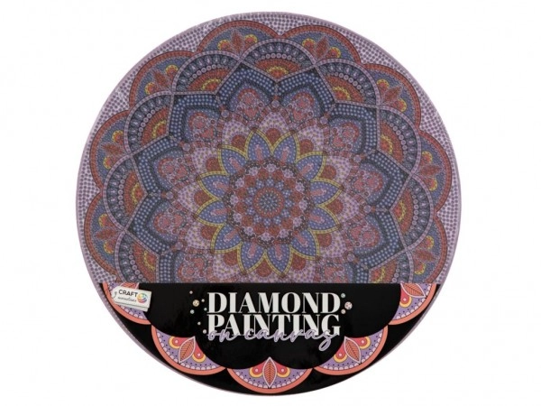 Otkrijte čaroliju dijamantnog slikanja s našim ljubičastim mandala dizajnom na okruglom platnu promjera 30 cm.
