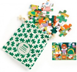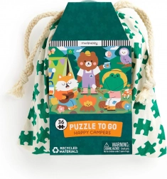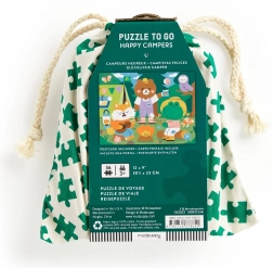 Zabavna putna slagalica s motivom veselih životinja u kampu razveselit će male putnike od 3 godine. Sadrži 36 precizno izrezanih dijelova, smještenih u praktičnoj platnenoj vrećici od 100% pamuka sa zateznom vrpcom. Idealan izbor za putovanja vlakom ili avionom – gotova slagalica stane na standardni avionski poslužavnik. Proizvedeno od recikliranih i održivo dobivenih materijala te tiskano netoksičnim sojinim bojama.