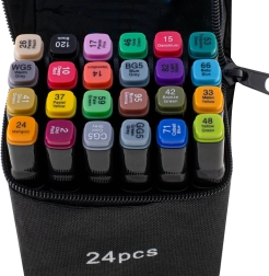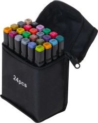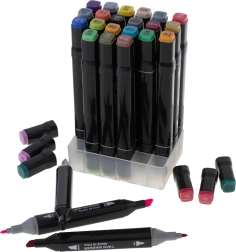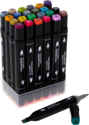 Dvobojni alkoholni flomasteri u etuiju, 24 boja + stalak