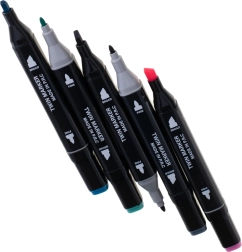 Ovaj svestrani set izvrstan je izbor za početnike i napredne – arhitekte, ilustratore, grafičare i hobi kreativce. Zahvaljujući dvostrukim vrhovima, udobno prelazite s velikih površina na detalje i stvarate čiste linije i glatke prijelaze. Praktični tekstilni etui i plastični stalak drže sve flomastere pregledno pri ruci kod kuće, u školi i na putu.