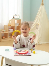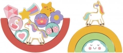 Otkrijte čaroliju igre koja spaja umetaljku i balansirajuću igru u jednom. Sastoji se od baze i 14 umetaljnih dijelova. Neka djeca iskušaju svoju strpljivost i kreativnost slažući šarene dijelove jedan na drugi.