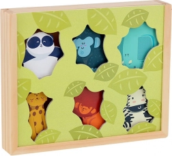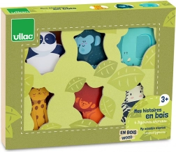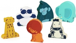 Drvene figurice su čvrste, idealne za dječje ruke i pružaju zabavu bez ekrana, s naglaskom na samostalno otkrivanje. Figurice su pohranjene u lijepoj drvenoj kutiji s motivima prirode i prozorčićima, koja donosi dašak divljine izravno u dječju sobu. Set sadrži: 6 figurica – lav, panda, gorila, slon, zebra i panter.