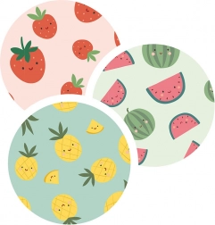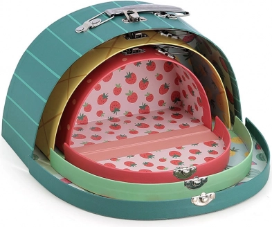 Set sadrži tri kovčega različitih veličina koji se lako mogu pospremiti jedan u drugi. Svaki kovčeg ukrašen je motivima sočnog voća kao što su lubenica, ananas i jagode, te unosi čaroliju u dječje okruženje.
