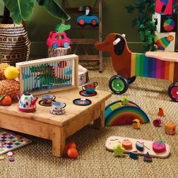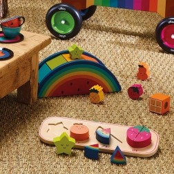 Otkrijte ljepotu i funkcionalnost ove drvene umetaljke prema dizajnu Andyja Westfacea. Svako će dijete biti oduševljeno bojama i oblicima koje ova igračka nudi. Savršena za razvoj fokusa, spretnosti i koordinacije ruka-oko.