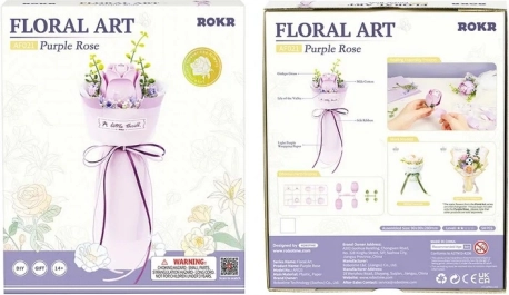 Sastavljanje 3D slagalice Ljubičasta Ruža sjajna je prilika za razvoj fine motorike, prostornog razmišljanja i strpljenja. Zahvaljujući 54 dijela i niskoj težini, u slaganje se mogu upustiti i djeca i odrasli. Kreativan aranžman u francuskom stilu upotpunjen je sitnim cvjetićima đurđica i jasmina.