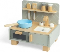 Kompaktan dizajn u nježnim neutralnim bojama odlično se uklapa u svaku dječju sobu ili igraonicu. Izrađena je od FSC® certificiranog drva i obojana netoksičnim bojama, što jamči održivu i sigurnu zabavu za djecu od 3 godine naviše. Osim zabave, ova kuhinjica potiče razvoj mašte i kreativnosti, dok djeca oponašaju uloge u kuhinji.
