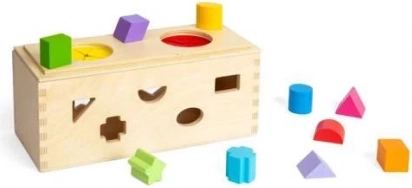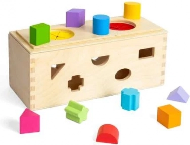 Umetanje i razvrstavanje oblika ne samo da zabavlja, već i razvija osjet dodira i senzorički razvoj. Djeca uče prepoznavati različite oblike i boje zahvaljujući FSC® certificiranom drvu i netoksičnim bojama.