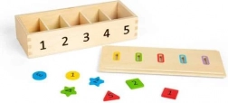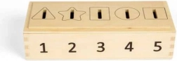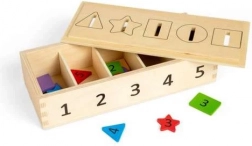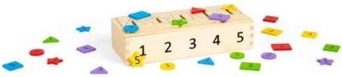 Koristite ovu inovativnu kutiju za vježbanje prepoznavanja brojeva, boja i oblika. Djeca mogu ubacivati žetone različitih boja i oblika označene brojevima od 1 do 5 u odgovarajuće otvore. Zahvaljujući obostrano uklonjivom poklopcu, rukovanje je jednostavno i zabavno.