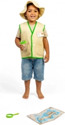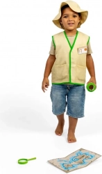 Kostim istraživača idealan je za poticanje mašte i kreativnosti. Sadrži prsluk, šešir, oznaku s imenom, detaljnu kartu, lupu, drvene fosile, kompas i posebnu lupu za promatranje kukaca, što osigurava sjajnu zabavu i učenje.