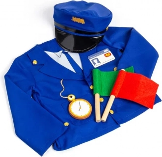 Ljubitelj vlakova? Isprobajte kostim prometnika Bigjigs Toys! Djeca mogu odjenuti plavi sako i tipičnu kapu te doživjeti nezaboravne pustolovine dok mašu signalnim zastavicama i prate vrijeme priloženim satom.