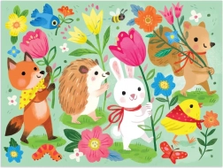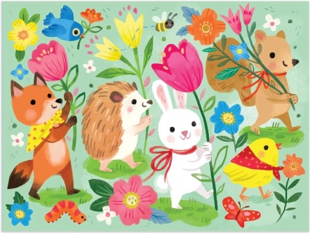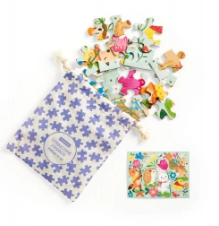 Preslatka puzzle s živopisnim ilustracijama životinja u proljetnoj povorci, sadrži 36 dijelova, koji su zapakirani u praktičnu 100% pamučnu vrećicu za putovanja.