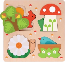 Otkrijte čaroliju prirode s Petit Collage umetaljka slagalicom koja će oduševiti vašu djecu. Ova višeslojna, osmodijelna slagalica predstavlja domove omiljenih životinja kao što su žabice, ptičice, vjeverice i puževi. Rasporedite svaki dio i pronađite pravo mjesto za svaki životinjski dom.