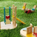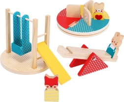 Uživajte u igri na igralištu sa znatiželjnim životinjskim prijateljima, među kojima su lisica, medvjed i zeko. Ovaj drveni set je idealan za razvoj fine motorike i emocionalne percepcije djece. Dio seta su atrakcije poput vrteške, ljuljačke i tobogana, koje će djeci osigurati sate zabave.