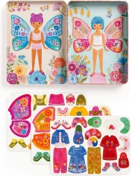 Set uključuje dva ilustrirana prizora s leptirovim damama koje čekaju da ih obučete. Isprobajte više od 40 magneta s odjevnim kombinacijama i leptirovim krilima na tri kartice. Svaki komad može se kombinirati prema vašoj vlastitoj kreativnosti.