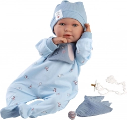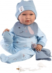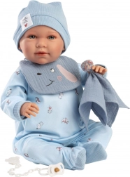 Dva usklađena komada odjeće, podbradak i tješitelj čine praktičnu opremu za razne situacije u igri – od hranjenja do uspavljivanja.